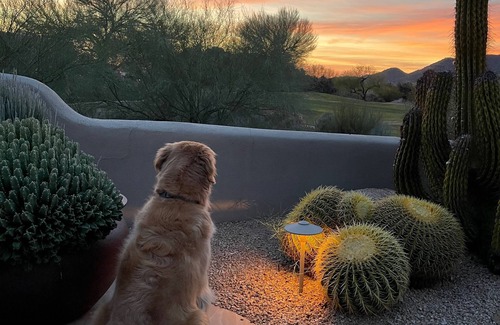 The backyard is your private retreat with mature cacti and variety of desert plantings, plenty of covered patio space, a new outdoor kitchen, and a heated salt water pool complete with a waterfall and outdoor gas burning chiminea. Be prepared for amazing sunsets over the Green with the western exposure. Just a short stroll away is the 5th Green community pool including a large hot tub that is also available in addition to your private pool at the GuggenHaus. High speed internet, cable TV and a wireless Bluetooth sound system are provided throughout the house. All of this on a quiet cul-de-sac lot. Monthly Boulder resort memberships are available for $550 per month per couple. Please inquire at the resort for more information (480) 488-7312.