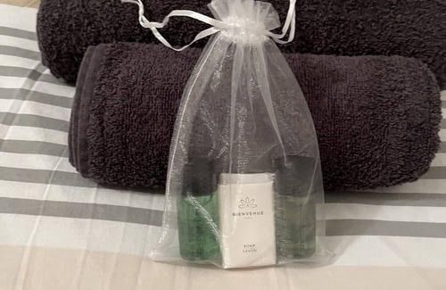 While you're here, you can enjoy all the comforts of home and more, including WiFi and air conditioning, as well as a dryer and an ironing board. Other amenities include towels, soap, toilet paper, and a hair dryer.