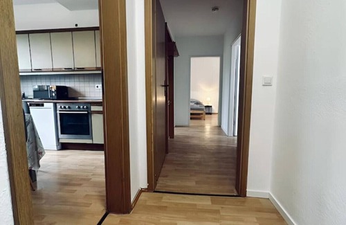 Diese Wohnung bietet viel Raum und Ruhe für große Gruppen oder Familien. Drei Schlafräume, gemeinsamer Wohn-/Essbereich, moderne Küche & Bad. Ausstattung wie Waschmaschine inklusive; Haustiere willkommen 🐾. Straßenparkplätze sind vorhanden und kostenlos ⚡.