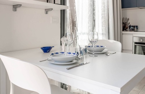 The apartment has a bedroom with double bed and foldaway bed, an elegant living room/kitchen with sofa bed, a bathroom and private terrace with sea view and dining table.