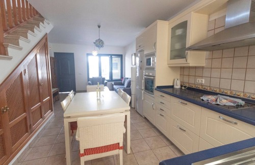 The villa is distributed on two floors and a rooftop, the ground floor has a living room-kitchen, bathroom with shower, laundry room and terrace, on the first floor, there are three bedrooms and a bathroom with shower, up the stairs we find a large and beautiful rooftop overlooking the sea and the spectacular Risco de Famara, where you can enjoy an area for sunbathing, eating or sitting.