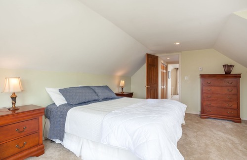 Fabulous Green Lake location - just a half block to the lake. This 1903 Farmhouse has 2 bedrooms, 1 ¾ bath and approximately 1,300 sq. ft. of living space. Top floor includes a private 330 square foot primary suite with king size bed, full bath, an office area and private deck to enjoy your morning coffee. The primary bedroom also has a portable AC unit for your comfort. The main level bedroom has a queen size bed. Internet and cable TV provided. One car parking off of the alley. Easy walking distance to cafes and restaurants and all the amenities that Green Lake has to offer. The home is a legal duplex with long term tenants in the lower unit. Laundry facilities are shared with the lower unit.