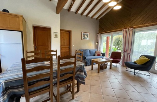 Detached single-story cottage located 10 minutes from the Cambo-les-Bains thermal baths, in a green setting on a working farm. This cottage offers large windows overlooking the Basque hillside landscape and invites relaxation. Kitchen (microwave, gas/electric hob, oven, dishwasher, fridge-freezer), living room, lounge area (fireplace/insert), 2 bedrooms (2 double beds, 1 single bed), shower room, toilet. Electric and wood heating available at an additional cost. Bed linen and towels available at an additional cost. Large enclosed garden, garden furniture, barbecue. Private parking.