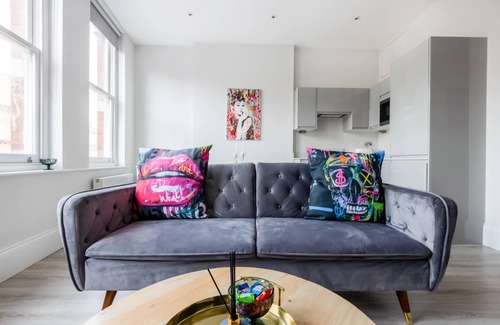 Enjoy a stylish experience at this amazingly-located Hampstead apartment. A no fuss way to enjoy London living without being in the chaos of the centre. This apartment is perfect for couples or friends who want a cosy space, in the great neighbourhood. Surrounded by trees, greenery, quaint alleys lined with stores and cafe's, this apartment is everything you need with chic yet playful interiors, pops of colour and personality, it has it all.