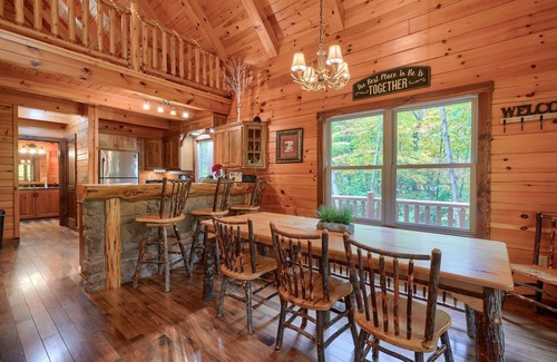 This hot tub cabin Hocking Hills features one-of-a-kind luxury amenities. This cabin was built around a center post hand selected from the owner’s own wooded lot. Exceeding the standard for Hocking Hills cabins, this rental cabin provides everything you need for a luxury stay with a large family or a group of friends. An outdoor hot tub works great for socializing, while an indoor jacuzzi tub in the master bath is a romantic treat for a couple.