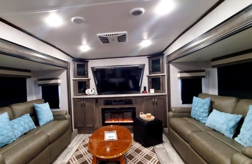 This privately owned Luxury RV lot comes TURN-KEY with a Brand New 2021 fully stocked RV that Sleeps 6! The master bedroom has a Queen bed and the living room has two couches that fold down into 2 queen beds. There are also 2 recliners in the living room and a dining table for 4. The kitchen is fully stocked. The bathroom has a large stand up shower with bench seating.