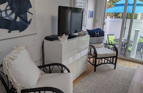 This Harwich Port cottage is an ideal hotel alternative. Bright white living room and kitchen leads to skylit bedroom & one full bath. Completely private front porch and enclosed outdoor patio dining. Walking distance to Wychmere Harbor and Bank Street Beach. Restaurants (Ember, The Port) and art galleries surround this peaceful beach home.