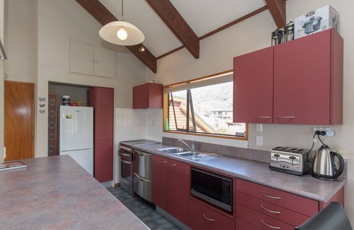 This 2 storey Wanaka holiday home includes warm and welcoming open plan living upstairs - the spacious lounge, dining, and kitchen ensures ample room for your group to relax and unwind or cook up family holiday feasts, with a potbelly fireplace for keeping toasty during your winter retreat. When the weather is warmer, enjoy the large deck with a sheltered area where you can dine al fresco in comfort - fire up the BBQ and check out the sweet lake scenes! A heat pump both up and downstairs ensure extra year round comfort.