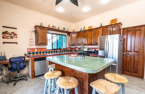 Welcome to your coastal oasis! This 3-bedroom, 2-bathroom home is located in the heart of Los Barriles, on the bottom floor of a two-story residence. Enjoy the convenience of enclosed parking and a brand new pool! The beach is just a 4-minute drive or a 12-minute stroll away. You are only minutes away from the seasonal Saturday market at Laguna Park. Work remotely with Starlink internet. Embrace comfort and adventure in this charming vacation rental. Book now for an unforgettable stay!