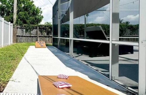 Tropical Oasis welcomes you with chirping cardinals and a stunning sunset sky of orange and turquoise. Upon arrival, dip your toe in the warm 80-degree heated pool, passing by the BBQ, fire pit, and corn hole setup perfect for family fun. Inside, vaulted ceilings greet you, and the second living room reflects the vibrant sunset hues. The master bedroom invites relaxation with a king-size bed and plush pillows, providing a restful space to unwind after a day of making memories. The space Sunrise Home has for FREE: ✔ A heated pool. ✔ Washer and dryer in-home for your convenience! ✔ A master bedroom with a king bed. ✔ Two different types of pillow firmness. ✔ Flat-screen TV in the master bedroom. ✔ Streaming apps like Disney+, HBO, Netflix, Peacock, etc. ✔ An attached full bathroom to the master bedroom. ✔ Shampoo, conditioner, and body wash. ✔ A walk-in closet. ✔ A second bedroom with a queen bed. ✔ A third bedroom with a bunk bed, stacked with a twin and full mattress. ✔ Extra linens and blankets. ✔ A second full bathroom. ✔ A fully-stocked kitchen, with all your essentials: plates, bowls, cups, coffee mugs, mixing bowls, blender, rice maker, etc. ✔ One living room with another flat-screen TV with all your streaming apps. ✔ A second living room with another flat-screen TV. ✔ A pullout queen sofa in the second living room. ✔ Travel crib for your little one. ✔ Linens for the travel crib. ✔ A backyard retreat with a private heated pool. ✔ Outdoor furniture for outdoor meals. ✔ A firepit with Adirondack chairs. ✔ Cornhole set up for you and your family. ✔ A dartboard. ✔ Lounge chairs to catch a tan. ✔ A bar to serve drinks in the sun! ✔ A barbecue grill to cook hotdogs and hamburgers. ✔ Outdoor TV in the breezeway. ✔ Four bicycles, two for adults and two for the kids. ✔ Beach chairs for the family. ✔ Beach umbrella for some shade at the beach. ✔ Coolers to keep the drinks cold at the beach. ✔ Beach toys for the kids! ✔ Indoor Games, such as Monopoly and Uno! If you made it to the bottom of the list, why not ask us about the best local restaurants and attractions? Even if you don’t book with us, ask us! We want everyone vacationing in Merritt Island/Cocoa Beach to have a great time! We are conveniently located: - 10 minutes to Cocoa Beach - 20 minutes to Kennedy Space Center - 25 minutes to Brevard Zoo - 40 minutes from Orlando International Airport - 45 minutes from Walt Disney World You'll have access to the entire property! Sunrise Home is located in a quiet residential neighborhood. Please keep the noise to a minimum from 10PM to 7AM. Thank you!