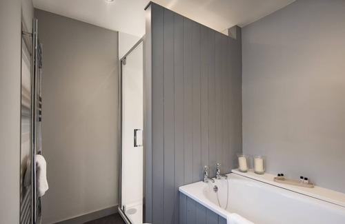 Family bathroom with bath, separate shower, WC and basin.