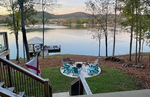 Lake Neely Henry Waterfront Home! 3BR, 2.5 Bath, Spectacular View, Fire Pits, Large Dock, Kayaks, Open Concept Well Equipped Kitchen. Unwind on the large, covered breezeway, walk around porch, patio swing, lawn chairs or at the dock. Secluded on Shoal Creek on the Coosa River (Lake Neely Henry), this rural getaway offers ultimate relaxation and escape!