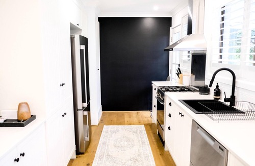 Welcome to Henderson House, a beautifully renovated single-level home that effortlessly combines modern elegance with a light and airy vibe. The open-plan living and dining areas are filled with natural light, offering delightful garden views through stylish plantation shutters.