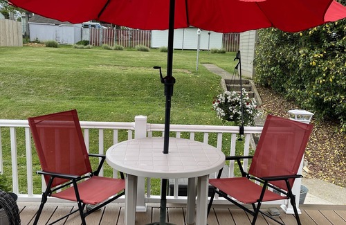 Cozy ranch house with nice deck for relaxing. Keyless check-in. Washer/dryer. We offer 2 large screen TVs with free WiFi.