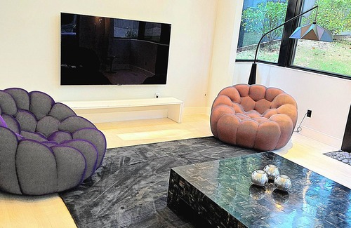 Enjoy a peaceful stay at this 4-bedroom house with a pool in a exclusive neighborhood in Atlanta. The bedrooms feature 2 king beds and 2 queen beds, perfect for a group stay . With amenities like a steam room, office mezzanine overlooking the pool two master bedrooms. Also included are hi-end