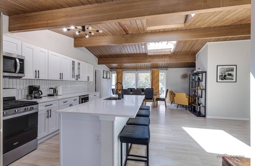 Open & Social Kitchen: Prepare delicious meals in our fully stocked, open-concept kitchen with stainless steel appliances, a wine chiller, and both a breakfast nook (seats 4) and a dining table (seats 6). Enjoy our local coffee station!