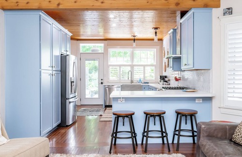 BNB Louisville welcomes you to our spacious 4 BD, 2.5 bath bungalow located in the heart of the quiet and picturesque Highlands Cherokee Triangle neighborhood. This home boasts a private, expansive backyard, perfect for relaxation and gatherings, along with a newly renovated kitchen that features modern appliances and ample counter space, ideal for culinary enthusiasts.