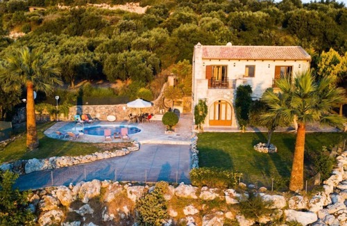 Traditional stone villa in Agia Triada with private pool, panoramic sea & mountain views, and easy access to Rethymno’s historic charm.