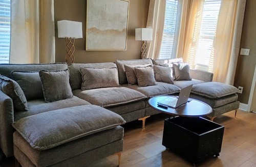 Escape to this adorable bungalow in walking distance to downtown Macon. This property features 3 cozy bedrooms with queen beds and 3 sofa beds, perfect for a group getaway. With 4 bathrooms equipped with showers, bathtubs, and hair dryers, guests are right at home. Enjoy the tranquil living room space with an additional sofa bed for extra comfort. Whether you're working out in the fitness room or exploring the city, this wonderful retreat is the ideal spot for your next vacation. We hope you enjoy what beautiful Macon has to offer.