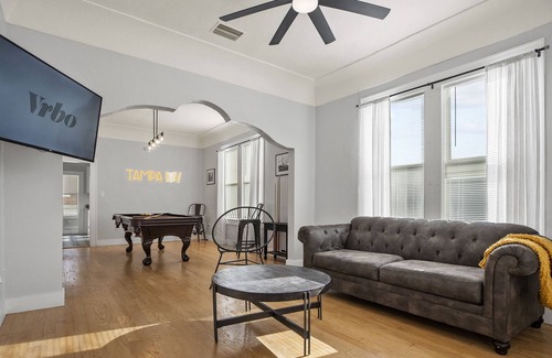This modernized 95 Year old charmer is located just blocks from the 7th Ave strip in Historic Ybor City, Tampa's epicenter for nightlife and restaurant cuisine. Gather around the pool table or get together under the "Tampa Bay" neon sign for a group photo, this house is great for friends and family to come together and make memories. Located 15 minutes from the airport, 6 minutes from Amalie Arena (Lightning/Concerts) and Downtown Tampa, also 12 minutes from Raymond James Stadium (Buccaneers).