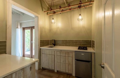 As you step inside, the open-concept layout seamlessly connects the well-appointed kitchen and the spacious living room, creating an inviting and harmonious living space where you can cook, dine, and relax together with your family or friends. The villa's unique design and attention to detail evoke a sense of comfort and sophistication that will make you feel right at home. In the living room you will find access to the elevated retreat that provides access to the balcony on the front of the house, providing a perfect spot for your morning coffee.