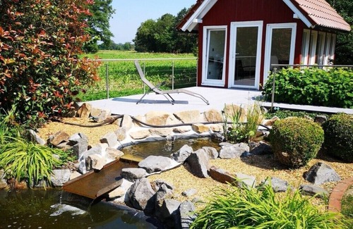 We warmly welcome you to the beautiful Münsterland! in Ostbevern (Brock district) Our holiday apartment "Aufderhaar" offers the perfect environment to relax with a large garden with several terraces and a garden house with its own garden pond. The 120 m² non-smoking holiday apartment offers 3 bedrooms (2 with box spring beds), 2 bathrooms, as well as a fully equipped kitchen and a large living room with a view of the garden house and the pond on 2 floors. WiFi (fiber optic connection) and a charcoal grill are also included. The holiday apartment has its own entrance. Parking options for bicycles in the garage directly at the house We ask for your understanding that we do not accept dogs, cats or other pets in our house.
