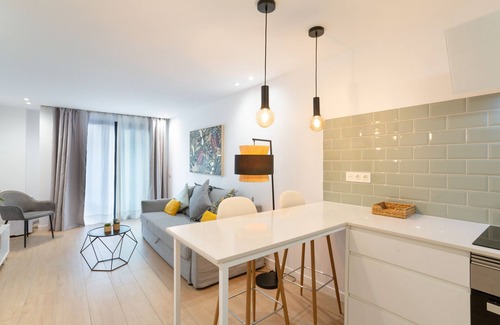 With views of the Atlantic, the holiday apartment Strada Suites Las Canteras in Las Palmas de Gran Canaria is perfect for a relaxing vacation. The 68 m² property consists of a living room with a sofa bed for 2 people, a well-equipped kitchen, 1 bedroom and 1 bathroom, accommodating up to 4 guests. Additional amenities include high-speed Wi-Fi (suitable for video calls) with a dedicated workspace, TV, air conditioning and a washing machine. A cot and a high chair are also available on request. The building has a lift. The accommodation offers a private outdoor area with a covered terrace and a balcony.