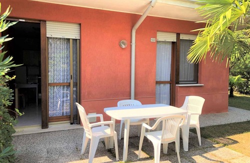 The holiday apartment is located in an apartment house and is furnished in a functional style. LocationBibione, district Lido dei Pini. The holiday apartement is located on a enclosed garden plot, bordered by a hedce. The landlord does not live in the house or on the property. Access is via a side road. Parking (for 1 car) is available in a carport. Specialair conditioning. There is no heating. TV reception takes place via antenna. TV channels only in local language.For your safety, the accommodation is equipped with CO2 detector and fire extinguisher. PoolAll pools are available for shared use. Outdoor pool (usable from end of May to mid September, 7,5 m x 15 m, depth 1,60 m). Dogsallowed. Free of charge. DistancesShopping 10 m, restaurant 10 m, town center 100 m. discotheque in Bibione Pineda 4 km. Bibione Spiaggia: pharmacy, bank each 200 m. thermal bath, indoor swimming pool, sauna each 3 km. doctor 500 m. railway station in Latisana 18 km. airport in Venezia 90 km. In summer: Mare Adriatico (beach 100 m in Mare Adriatico featuring sand). fishing, diving, boat rental, boat launch each 4 km in Bibione Pineda. tennis, mini golf, horse riding each 1000 m in Bibione Spiaggia. golf in Lignano Sabbiadoro 3 km. water sports in Mare Adriatico 100 m. dog beach in Spiaggia di Pluto in Lido dei Pini 100 m. DivisionHoliday apartment, 1 floor, 3 rooms (including 2 bedrooms), 50 sqm, in total 6 beds (including 2 additional beds). RoomThe entrance to your holiday apartment is located on the ground floor and leads directly into the living room. Living room with 2 additional beds on couch/sofa, TV, dining area (6 seats) and access to the terrace (garden furniture, 1 table, 4 chairs). Bedroom with 1 double bed. Bedroom with 2 single beds. Cooking nook with gas stove (4 flames), dishwasher, fridge (icebox) and microwave. Bathroom (not heatable) with shower, 1 washbasin, WC, bidet and window. Terms of lease and pricesIncluded in the priceOutdoor pool, air conditioning, parking place, electricity, gas, water, beach service (1 sunlounger, 1 chair, 1 parasol) (17.05.25-21.09.25, 16.05.26-20.09.26). Side costs-Additionally(Payable when booking)/additonal fee for short-term stays (less than 6 nights) obligatory 40% per booking per stay.Costs on the spot:/Obligatory:final cleaning (if not performed by the tenant) 40 € per object per stay. local tax by local tariff (if charged).On request:children bed 15 € per bed under 3 years per week. children chair 10 € per piece under 2 years per week. bed linen 9 € per person per change. laundry package (hand towels, bath towel) 8 € per person per change.Deposit:EUR 150,-/object