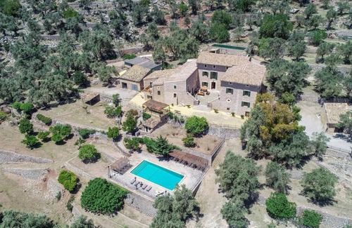 The old land estate Caballería is situated on the top of the mountains in the Sierra the Tramuntana close to Soller and Bunyola and only 15 kilometres from Palma. From here you will be able to make beautiful visits to the small beaches "calas" on the north coast, excursions into the mountains or the little villages surrounding it. The house is suitable for big groups and very luxury equipped. All rooms have TV set and minibar. Central heating and air-conditioning throughout the whole house. No need to mention the enormous pool and breakfast terrace with views on Palma de Mallorca.-No se admiten grupos ni menores de 30 años ( Cada persona debe pagar 100€ de fianza) -Respetar las normas de la casa:-No fiestas-No ruidos pasado las 22 hrs-No mover ni sacar el mobiliario de su sitio-Esta propiedad se reserva el derecho de admision y cualquier persona que haga un mal uso de la propiedad, esta invitada al desalojo inmediato, sin devolucion de su dinero.