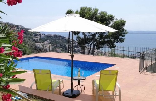 The spacious house, built in 2003, is situated on a 1000m2 hillside plot with mature trees in the villa district of the "Els Grecs" urbanisation. Sunny, quiet location with fantastic panoramic views of Roses and the largest bay in the Mediterranean. Because trees had to be felled due to age, you can enjoy this unique view from the upper terrace, the lower terrace and from the pool. The previous rather small kidney-shaped pool was replaced in 2020 by a larger rectangular pool measuring 7.5 metres long and 4 metres wide with water depths of 1.20 metres to 1.70 metres, making it particularly family-friendly. At the same time, the sunbathing area around the pool has been generously extended.ground floor with 3 bedrooms, bathroom/shower/WC, utility room with washing tower, large covered terrace. Ample space on the 1st floor with living room (dining table, upholstered suite, satellite TV, fireplace stove) and eat-in kitchen (ceramic hob, oven, microwave, fridge and freezer, dishwasher, "Dolce Gusto" coffee machine, toaster), shower/WC and open terrace. Swimming pool with large sunbathing area, garden sitting area with wood/charcoal barbecue, garden furniture. Car parking space. Next to the garden and above the house begins the nature reserve, which invites you to go on relaxing hikes.we are pleased to receive numerous positive feedbacks from our guests, which our caretakers are allowed to receive and pass on to us. But we also take complaints from former guests very seriously. The new pool with its spacious sunbathing area in a unique panoramic location should also meet high standards. The garden furniture has been renewed and a robust "wobble-free" large glass table is available for the terrace. The upstairs bathroom has been renovated. Mosquito screens have been fitted to the bedroom windows; however, as there are very small insects that can probably get through these fine screens, we recommend using additional mosquito plugs. Our caretakers are very committed to the cleanliness of the house; however, they are dependent on our guests leaving the kitchen and barbecue as they would like to find them.