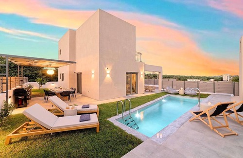 Modern in design, unpretentious in attitude KS Luxury Villa offer a relaxed retreat with great views to the olive groves and the high pics of the White Mountains.Attentive service, sun terraces for each Villa that are perfect platforms for sunbathing. KS Luxury Villa offers guests the opportunity to truly immerse themselves in the Cretan experience. Within easy reach from the island’s famous Kournas Lake and the popular town of Georgioupolis our villa combine a contemporary, modern style with supreme comfort. Built in 2022 our villa offer guests an exclusive, relaxing experience all within the idyllic setting of Greece’s most hospitable island. Our philosophy is simple: to offer first-rate hospitality coupled with unrivalled privacy.The Villa is fully equipped, offering our quests the required convenience in order to enjoy unforgettable relaxing vacations throughout spring, summer and autumn.