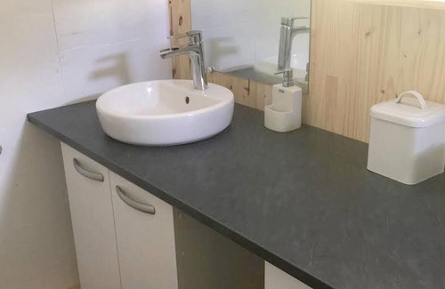 The kitchen is well-equipped for cooking up your favorite meals. Enjoy your feast around the dining table which seats 3 or outside, in the garden or on the terrace.