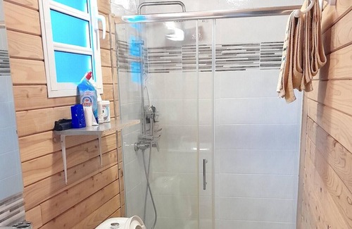 The chalet has a comfortable bedroom with a double bed. The bathroom is fitted with a shower and a toilet.