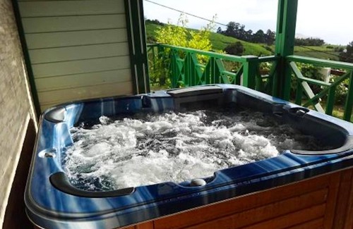 The house features cleaning products, ironing equipment, a vacuum cleaner, a washing machine and a jacuzzi.