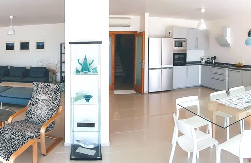 The kitchen is well-equipped for cooking up your favorite meals. Enjoy your feast around the dining table which seats 16 or outside, in the garden or on the terrace enjoying views of the swimming pool, the sea and the mountains.