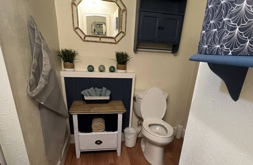 This studio comes with a Kitchenette, microwave, toaster, coffee station, plates, cups and silverware . We supply k cup coffee, hot chocolate, tea, Internet and TV, dog bed and bowls.