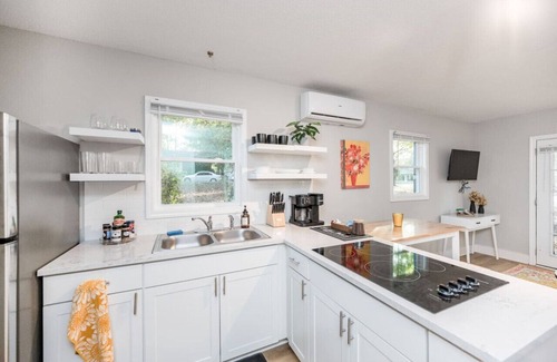 Experience the ultimate getaway with this exceptional property! Upstairs, you'll find a stylish 3 bedroom, 1 bathroom space featuring 3 queen beds and a pull-out couch. Plus, you’ll have complete access to a charming downstairs one-bedroom apartment with its own private entrance, a full kitchen, and a luxurious king bed. It also has a pull out couch as needed.