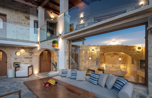 Stone walls, wooden ceilings, earthly tones, elegant decoration and furnishings are the key elements of Moundros Luxury Villa & Spa, giving off a relaxing ambience to the whole property. The 220 m2 newly restored Villa spreads in three levels and can comfortably accommodate 8 guests in its 4 en-suite bedrooms and up to 10 if needed.