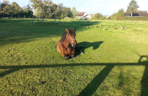 Small house of 45m2, full foot comprising living room open to fitted kitchen + bathroom with Italian shower and wc +1 large bedroom with double bed. Convertible faux leather corner sofa bed 2prs in living room. Private courtyard closed for vehicle. For riders pasture of 1 hectare 200 for horses. Very quiet and relaxing place located 2 km from all shops, 10 minutes from Le Crotoy, 15 minutes from Fort Mahon plage
