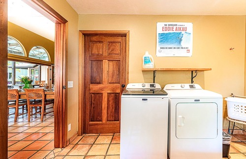 There are three bedrooms and one additional sleeping area. The private Orchid Suite is separate from the main house and boasts an ensuite bathroom with private lava rock outdoor shower. Two more bedrooms are in the main part of the house. Bedroom 2 shares a full bathroom across the hall and Bedroom 3 has an ensuite bathroom. The final sleeping area is a comfortable queen size bed in our large laundry room.