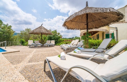 Discover the charm of this stunning country house, nestled in the picturesque village of Petra, Mallorca, offering a peaceful escape for up to 10 guests. The property boasts a magnificent 10x15m private pool, surrounded by 10 comfortable sunbeds, ideal for basking in the Mediterranean sun. A large covered terrace with a dining table sets the scene for alfresco meals, while additional outdoor furniture provides a relaxing space to admire the breathtaking natural views. For grill enthusiasts, the country house also features a barbecue area to enhance your outdoor dining experience. Situated just minutes from the village center, the country house is perfectly located to explore Mallorca’s best offerings. Nearby, you’ll find authentic Mallorcan restaurants where you can indulge in local cuisine. The villa also provides an excellent starting point for discovering the island’s top beaches and hidden gems. For hiking enthusiasts, a short walk will take you to the Sanctuary of the Virgin of Bonany, offering stunning panoramic views of the island’s landscapes. Inside, the country house blends classic charm with modern comforts. The ground floor features a stylish living room with classic wooden ceiling paneling, a cozy dining area, and a fully equipped kitchen. One bedroom and a bathroom with a shower are also on this floor, alongside a second living room with a TV.