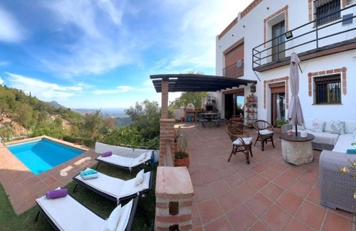 It has a large terrace with a BBQ area, dining room, chill-out space, access to the pool and its garden area with sun beds, fabulous views of the town and the Costa del Sol.