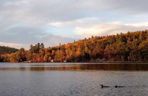Newly rebuilt camp with every amenity. Eat breakfast each morning on the dock or on the rocking chairs on deck. Enjoy dinner in the dining room with large picture window facing the lake. Go out to explore around the lake and catch a glimpse of the resident loons on your choice of Kayaks, canoe, paddle board. Absolutely a slice of heaven. Upstairs bedroom #1 has queen sized bed and full size futon, upstairs bedroom #2 has queen sized bed and built in dressers, downstairs bedroom has full size bed. Full bathroom upstairs and downstairs. The fully equipped kitchen has large pantry, spices galore with beautiful large granite countertop. The downstairs entry houses mudroom area and full washer and dryer. It's your home away from home. Cable and wifi available.