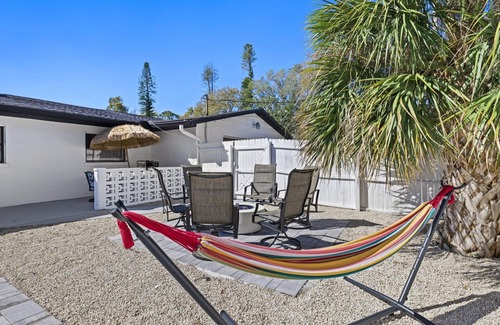 Your luxurious, tropical oasis awaits! Our massive, newly decorated, 6 bedroom/3 bathroom home (12 BEDS) is just 15 minutes from the beautiful, white sand of the anna maria island beaches! You can swim, relax in a hammock by the pool, grill, roast marshmallows around our glass, propane fire pit or just lounge around the beautiful, quiet and private backyard. Parking is plentiful and the kitchen comes fully stocked - all that's missing here is YOU and your group. We can't wait to host you all :)