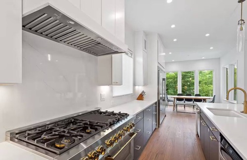 When you're ready to turn in for the night, walk up to the second floor where you will find our 4 cozy bedrooms. Bedroom 1 has a king-sized bed, huge walk-in closet, gorgeous en suite, and as an added bonus, a walk-out patio perfect for a morning cup of coffee or a night cap. Bedroom 2 has a queen-sized bed and an en suite. Bedrooms 3 and 4 will also have queen-sized beds and while they share the full bath in the hall, these bedrooms face the Raleigh skyline.