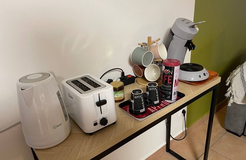 As you settle into the place, you'll find air conditioning and a desk. Connect to the free WiFi, or get cozy in front of the Smart TV. Bathroom amenities include a hair dryer, towels, and toilet paper. The kitchen is equipped with an oven, a stovetop, and a refrigerator, as well as a coffee maker, an electric kettle, and a microwave. And thanks to the washer and dryer, you'll even be able to travel light. Other amenities include bed sheets, an ironing board, wardrobe or closet, and a dining table.