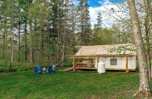 Huge tent with AC at Big Rock Creek is located in St Croix Falls. Huge tent with AC at Big Rock Creek provides accommodation, featuring Security/Safety, Spa, Barbecue/Outdoor Cooking, among other amenities. This RV Rental features Security/Safety, Spa, Barbecue/Outdoor Cooking, to make your stay a comfortable one.