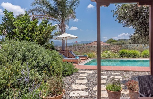Yiannis Cottage is situated in a small village in W. Crete, set above Spilia's Myrtidiotissa Church, with it's magnificent painted interior. Indulge yourself around your own beautiful private Pool, listening to bird-song and enjoying the scent of fragrant flowers.