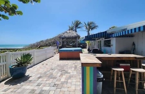 Iguana Azul is a charming oceanfront beach cottage offering direct access to a pristine beach via a private boardwalk. Surrounded by tropical landscaping with bananas, coconuts, and vibrant flowers, it provides a peaceful retreat for up to 8 guests. Enjoy the sounds of the waves, watch sea turtles nest, or relax in the 8-person hot tub under the stars. Conveniently located near local attractions, Iguana Azul offers the perfect balance of relaxation and adventure for your Florida getaway!