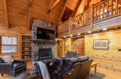 Perfect for larger groups, the cabin comfortably sleeps 15 guests with multiple gathering areas. There is a master bedroom and bath on the first floor, and a second master bedroom and bath in the basement, making this cabin perfect for all ages.